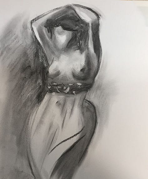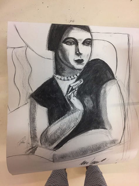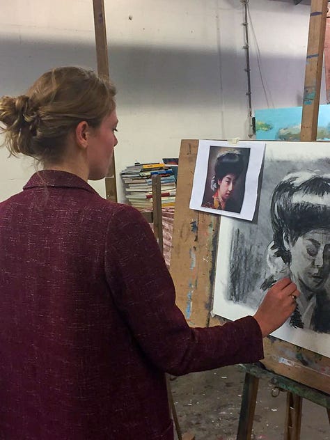 I learned to paint element by element, layer by layer. I had to start by recreating existing paintings with charcoal. This is a wonderful medium as it’s very forgiving: you can erase any (light) lines if you made a mistake, and create a lot of contrast.