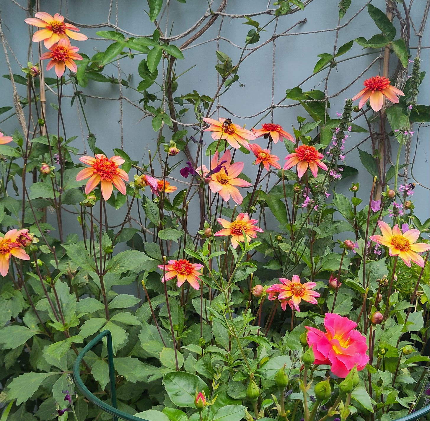 It’s probably a bit much on 9 m2. I tried to create a palette of boiled sweets à la Sarah Raven. Although she advises against using too many of those colours together (maybe I should’ve listened). I did this in 2024 too, and it worked then. But this year I think harmony and flow between the colours were missing.